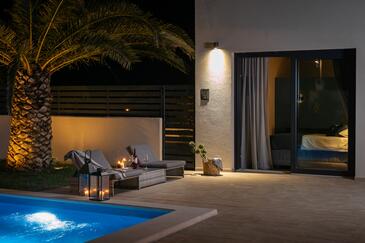 Az Ház 6 főt tud fogadni. Az ágyak a/az 3 hálószobában vannak, melynek méretei 97m2. A forró nyári estéket a vendégek saját teraszukon élvezhetik. A házból tengerre néző kilátás nyílik. A teljes élvezet és kikapcsolódás érdekében van saját barbecue hely is, csakis e szálláshely vendégei számára. A vendégek itt tartózkodásuk ideje alatt kikapcsolódás céljából használhatják a magán medencét.