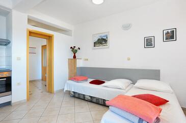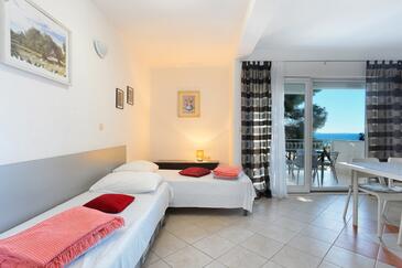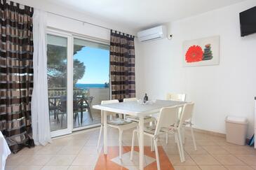 Az Apartman 5 főt tud fogadni. Az ágyak a/az 1 hálószobában, és a nappaliban/ben vannak, melynek méretei 49m2. A forró nyári estéket a vendégek saját teraszukon élvezhetik. Az apartmanból tengerre néző kilátás nyílik. A közös barbecue-helyet a vendég szabadon használhatja.