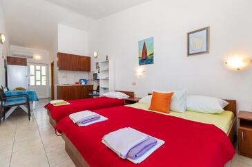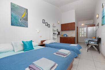 Az Stúdió 3 főt tud fogadni. Az ágyak a/az 1 hálószobában vannak, melynek méretei 23m2. A forró nyári estéket a vendégek saját balkonukon élvezhetik. A stúdióból tengerre néző kilátás nyílik. A közös barbecue-helyet a vendég szabadon használhatja.