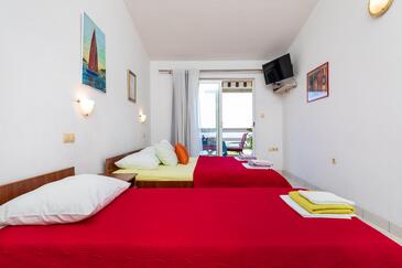 Az Stúdió 3 főt tud fogadni. Az ágyak a/az 1 hálószobában vannak, melynek méretei 23m2. A forró nyári estéket a vendégek saját balkonukon élvezhetik. A stúdióból tengerre néző kilátás nyílik. A közös barbecue-helyet a vendég szabadon használhatja.
