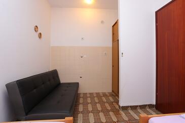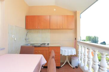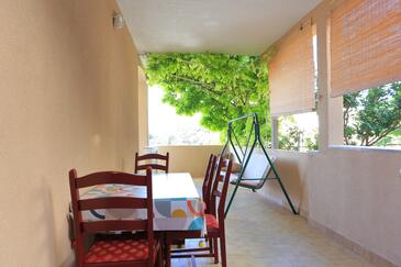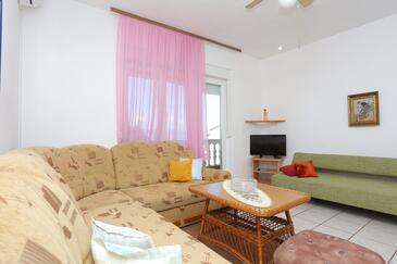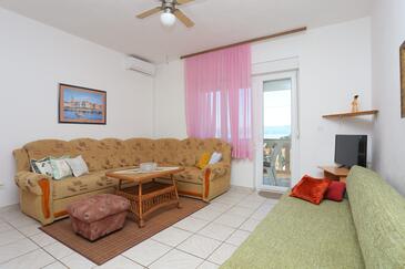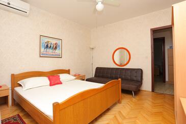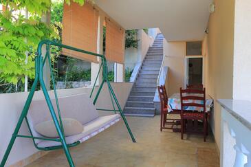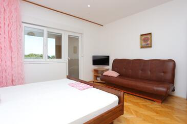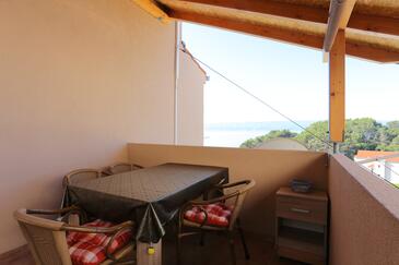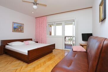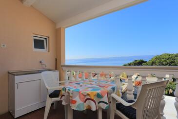 Az Apartman 5 főt tud fogadni. Az ágyak a/az 2 hálószobában vannak, melynek méretei 36m2. A forró nyári estéket a vendégek saját teraszukon élvezhetik. Az apartmanból tengerre néző kilátás nyílik. A közös barbecue-helyet a vendég szabadon használhatja. A lefoglalt szállásegység bizonyos helyiségei nem összekötöttek.