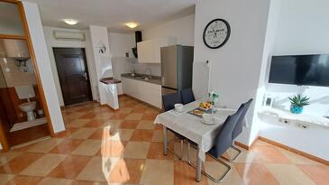 Az Apartman 4 főt tud fogadni. Az ágyak a/az 2 hálószobában vannak, melynek méretei 42m2. A forró nyári estéket a vendégek saját balkonukon élvezhetik. Az apartmanból tengerre néző kilátás nyílik. A közös barbecue-helyet a vendég szabadon használhatja.
