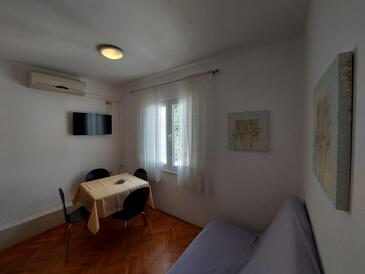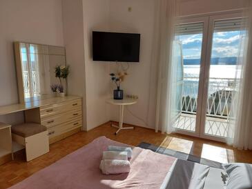 Az Apartman 4 főt tud fogadni. Az ágyak a/az 1 hálószobában, és a nappaliban/ben vannak, melynek méretei 32m2. A forró nyári estéket a vendégek saját balkonukon élvezhetik. Az apartmanból tengerre néző kilátás nyílik. A közös barbecue-helyet a vendég szabadon használhatja.