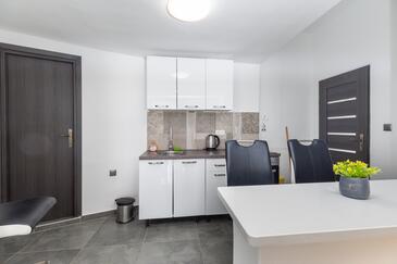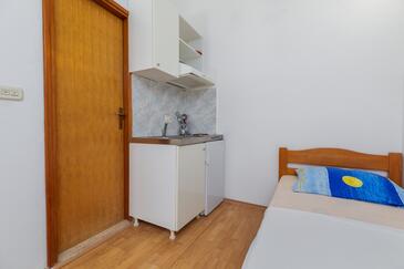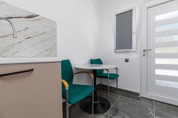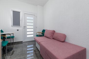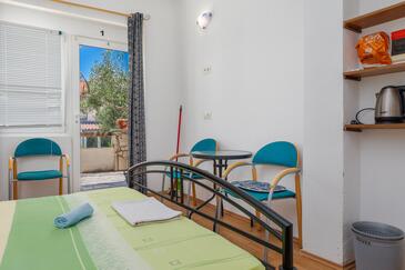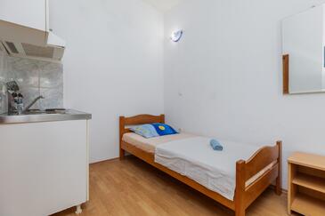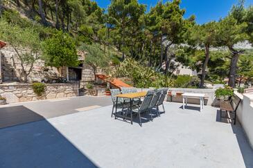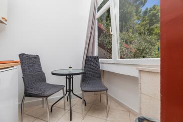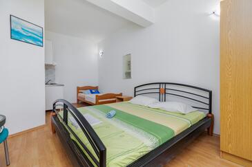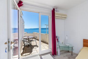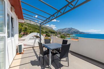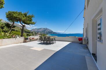 Az Apartman 5 főt tud fogadni. Az ágyak a/az 2 hálószobában vannak, melynek méretei 45m2. A forró nyári estéket a vendégek saját teraszukon élvezhetik. Az apartmanból tengerre néző kilátás nyílik. A közös barbecue-helyet a vendég szabadon használhatja.