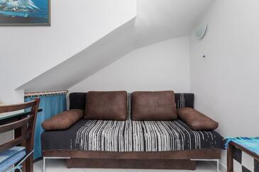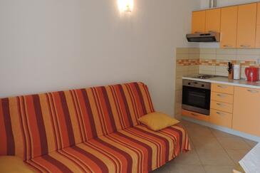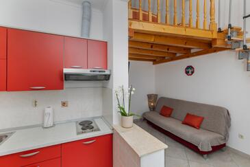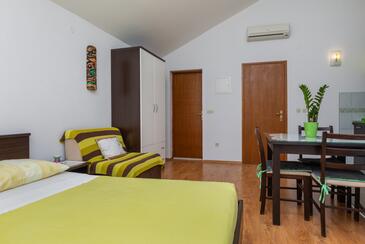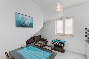 Az Apartman 3 főt tud fogadni. Az ágyak a/az 1 hálószobában, és a étkezőban/ben vannak, melynek méretei 31m2. A forró nyári estéket a vendégek saját balkonukon élvezhetik. Az apartmanból tengerre néző kilátás nyílik. A közös barbecue-helyet a vendég szabadon használhatja.