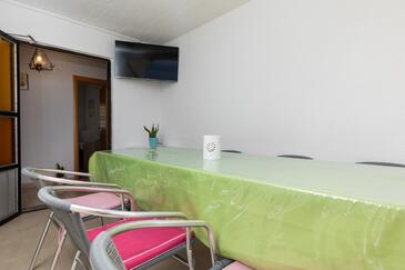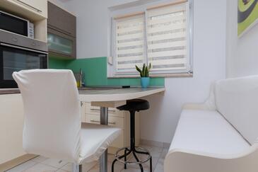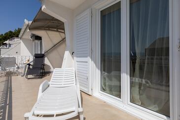 Az Apartman 7 főt tud fogadni. Az ágyak a/az 2 hálószobában vannak, melynek méretei 48m2. A forró nyári estéket a vendégek saját teraszukon élvezhetik. Az apartmanból tengerre néző kilátás nyílik. A közös barbecue-helyet a vendég szabadon használhatja.