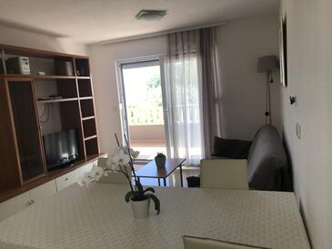 Az Apartman 6 főt tud fogadni. Az ágyak a/az 2 hálószobában, és a nappaliban/ben vannak, melynek méretei 58m2. A forró nyári estéket a vendégek saját teraszukon élvezhetik. Az apartmanból tengerre néző kilátás nyílik. A közös barbecue-helyet a vendég szabadon használhatja. A szállásegységbe lehetséges háziállatot hozni felár ellenében.