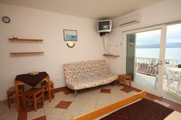 Az Apartman 4 főt tud fogadni. Az ágyak a/az 1 hálószobában, és a nappaliban/ben vannak, melynek méretei 33m2. A forró nyári estéket a vendégek saját balkonukon élvezhetik. Az apartmanból tengerre néző kilátás nyílik. A közös barbecue-helyet a vendég szabadon használhatja.