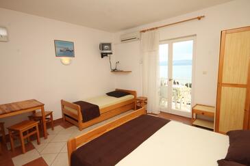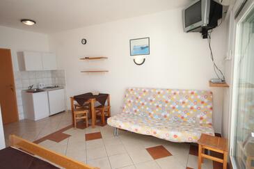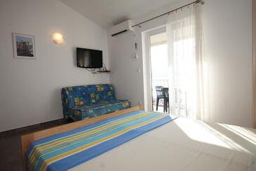 Az Apartman 4 főt tud fogadni. Az ágyak a/az 1 hálószobában, és a nappaliban/ben vannak, melynek méretei 33m2. A forró nyári estéket a vendégek saját balkonukon élvezhetik. Az apartmanból tengerre néző kilátás nyílik. A közös barbecue-helyet a vendég szabadon használhatja.