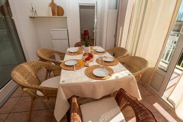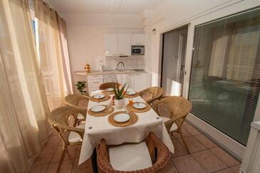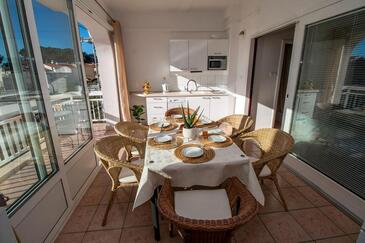 Az Apartman 7 főt tud fogadni. Az ágyak a/az 3 hálószobában vannak, melynek méretei 99m2. A forró nyári estéket a vendégek saját balkonukon élvezhetik. Az apartmanból tengerre néző kilátás nyílik. A teljes élvezet és kikapcsolódás érdekében van saját barbecue hely is, csakis e szálláshely vendégei számára. A szállásegységbe lehetséges háziállatot hozni felár ellenében.