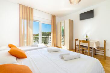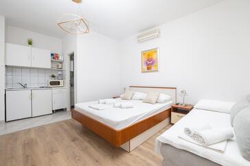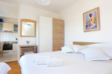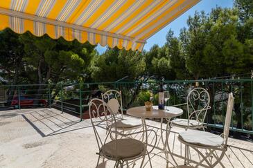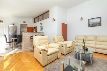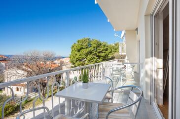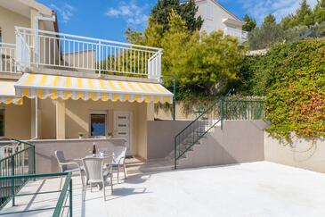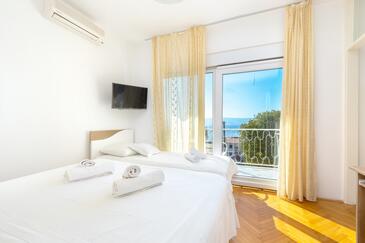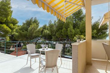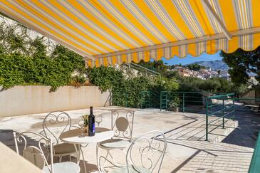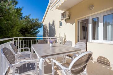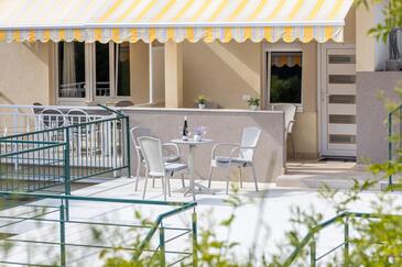 Az Apartman 10 főt tud fogadni. Az ágyak a/az 3 hálószobában, és a nappaliban/ben vannak, melynek méretei 103m2. A forró nyári estéket a vendégek saját teraszukon élvezhetik. Az apartmanból tengerre néző kilátás nyílik. A közös barbecue-helyet a vendég szabadon használhatja. A lefoglalt szállásegység vendégeinek az érkezés napján a helyszínen letétet kell fizetniük (az összeg a honlapon fel van tüntetve).