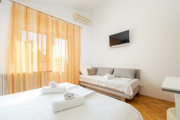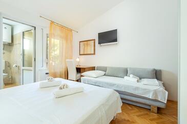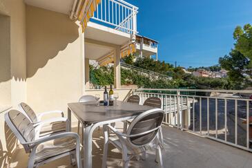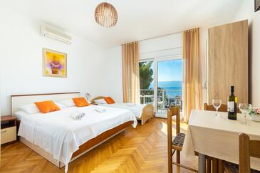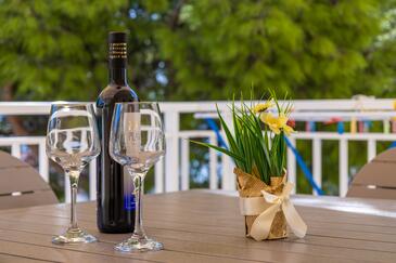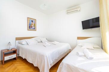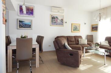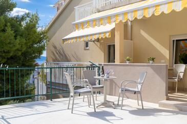Az Apartman 10 főt tud fogadni. Az ágyak a/az 3 hálószobában, és a nappaliban/ben vannak, melynek méretei 103m2. A forró nyári estéket a vendégek saját teraszukon élvezhetik. Az apartmanból tengerre néző kilátás nyílik. A közös barbecue-helyet a vendég szabadon használhatja. A lefoglalt szállásegység vendégeinek az érkezés napján a helyszínen letétet kell fizetniük (az összeg a honlapon fel van tüntetve).