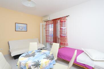 Az Apartman 4 főt tud fogadni. Az ágyak a/az 2 hálószobában vannak, melynek méretei 29m2. A forró nyári estéket a vendégek saját teraszukon élvezhetik. Az apartmanból tengerre néző kilátás nyílik. A közös barbecue-helyet a vendég szabadon használhatja. A szállásegységbe lehetséges háziállatot hozni felár ellenében.