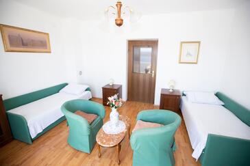 Az Apartman 4 főt tud fogadni. Az ágyak a/az 1 hálószobában, és a nappaliban/ben vannak, melynek méretei 71m2. A forró nyári estéket a vendégek saját teraszukon élvezhetik. Az apartmanból tengerre néző kilátás nyílik. A közös barbecue-helyet a vendég szabadon használhatja. A szállásegységbe lehetséges háziállatot hozni, ennek költségét a foglalási díj tartalmazza.