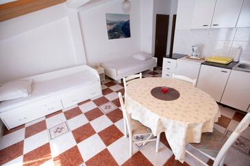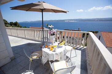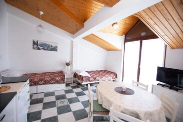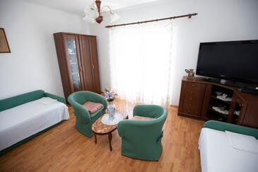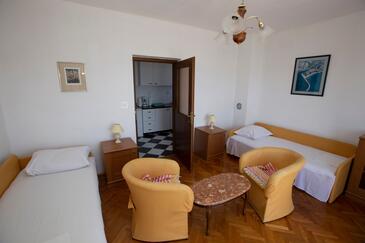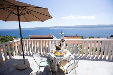 Az Apartman 4 főt tud fogadni. Az ágyak a/az 1 hálószobában, és a nappaliban/ben vannak, melynek méretei 71m2. A forró nyári estéket a vendégek saját teraszukon élvezhetik. Az apartmanból tengerre néző kilátás nyílik. A közös barbecue-helyet a vendég szabadon használhatja. A szállásegységbe lehetséges háziállatot hozni, ennek költségét a foglalási díj tartalmazza.