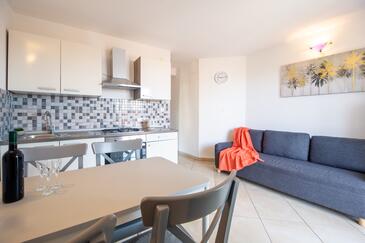 Az Apartman 6 főt tud fogadni. Az ágyak a/az 2 hálószobában, és a nappaliban/ben vannak, melynek méretei 72m2. A forró nyári estéket a vendégek saját teraszukon élvezhetik. Az apartmanból tengerre néző kilátás nyílik. A közös barbecue-helyet a vendég szabadon használhatja.