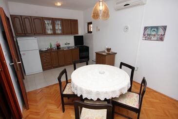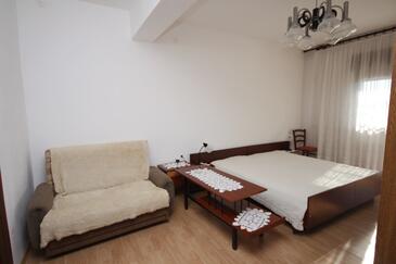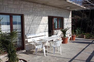 Az Apartman 6 főt tud fogadni. Az ágyak a/az 2 hálószobában vannak, melynek méretei 60m2. A forró nyári estéket a vendégek saját teraszukon élvezhetik. Az apartmanból tengerre néző kilátás nyílik. A közös barbecue-helyet a vendég szabadon használhatja.