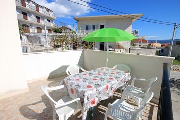 Az Apartman 6 főt tud fogadni. Az ágyak a/az 3 hálószobában vannak, melynek méretei 79m2. A forró nyári estéket a vendégek saját teraszukon élvezhetik. Az apartmanból tengerre néző kilátás nyílik. A közös barbecue-helyet a vendég szabadon használhatja.