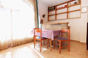 Az Apartman 6 főt tud fogadni. Az ágyak a/az 3 hálószobában vannak, melynek méretei 79m2. A forró nyári estéket a vendégek saját teraszukon élvezhetik. Az apartmanból tengerre néző kilátás nyílik. A közös barbecue-helyet a vendég szabadon használhatja.