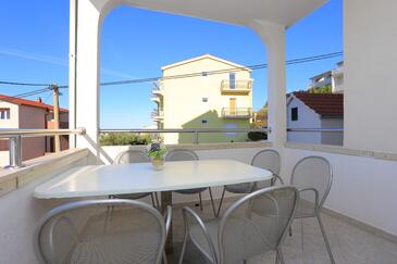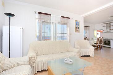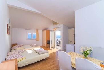 Az Apartman 4 főt tud fogadni. Az ágyak a/az 1 hálószobában, és a nappaliban/ben vannak, melynek méretei 35m2. A forró nyári estéket a vendégek saját teraszukon élvezhetik. Az apartmanból tengerre néző kilátás nyílik. A közös barbecue-helyet a vendég szabadon használhatja.