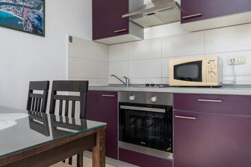 Az Apartman 4 főt tud fogadni. Az ágyak a/az 1 hálószobában, és a nappaliban/ben vannak, melynek méretei 38m2. A forró nyári estéket a vendégek saját balkonukon élvezhetik. Az apartmanból tengerre néző kilátás nyílik. A közös barbecue-helyet a vendég szabadon használhatja.