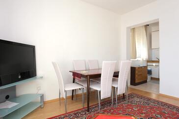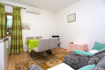 Az Apartman 6 főt tud fogadni. Az ágyak a/az 2 hálószobában, és a nappaliban/ben vannak, melynek méretei 52m2. A forró nyári estéket a vendégek saját balkonukon élvezhetik. Az apartmanból tengerre néző kilátás nyílik. A közös barbecue-helyet a vendég szabadon használhatja. A lefoglalt szállásegység közös teraszt használ.. A lefoglalt szállásegység bizonyos helyiségei nem összekötöttek. A szállásegység egyes helyiségei elkülönülnek a szállásegység többi részétől. A szállásegység nincsen ajtóval elválasztva az objektum többi helyiségétől.