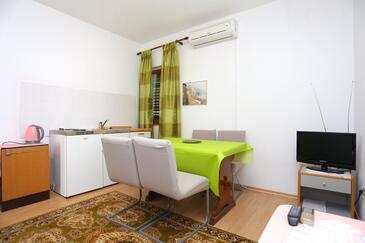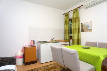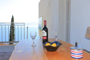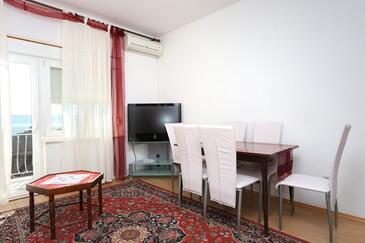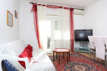 Az Apartman 6 főt tud fogadni. Az ágyak a/az 2 hálószobában, és a nappaliban/ben vannak, melynek méretei 52m2. A forró nyári estéket a vendégek saját balkonukon élvezhetik. Az apartmanból tengerre néző kilátás nyílik. A közös barbecue-helyet a vendég szabadon használhatja. A lefoglalt szállásegység közös teraszt használ.. A lefoglalt szállásegység bizonyos helyiségei nem összekötöttek. A szállásegység egyes helyiségei elkülönülnek a szállásegység többi részétől. A szállásegység nincsen ajtóval elválasztva az objektum többi helyiségétől.