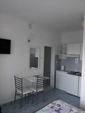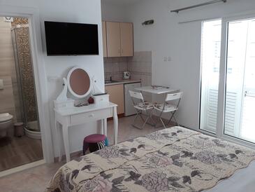 Az Apartman 4 főt tud fogadni. Az ágyak a/az 1 hálószobában, és a étkezőban/ben vannak, melynek méretei 28m2. A forró nyári estéket a vendégek saját teraszukon élvezhetik. Az apartmanból tengerre néző kilátás nyílik. A közös barbecue-helyet a vendég szabadon használhatja.