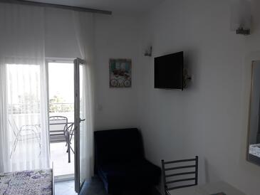Az Apartman 4 főt tud fogadni. Az ágyak a/az 1 hálószobában, és a étkezőban/ben vannak, melynek méretei 28m2. A forró nyári estéket a vendégek saját teraszukon élvezhetik. Az apartmanból tengerre néző kilátás nyílik. A közös barbecue-helyet a vendég szabadon használhatja.