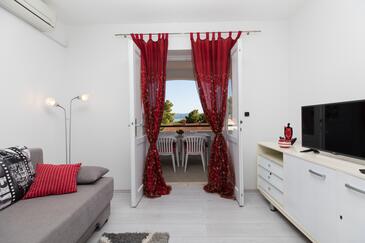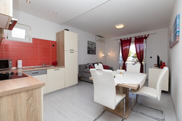 Az Apartman 6 főt tud fogadni. Az ágyak a/az 2 hálószobában, és a nappaliban/ben vannak, melynek méretei 56m2. A forró nyári estéket a vendégek saját teraszukon élvezhetik. Az apartmanból tengerre néző kilátás nyílik. A közös barbecue-helyet a vendég szabadon használhatja.