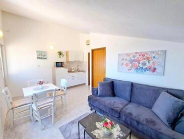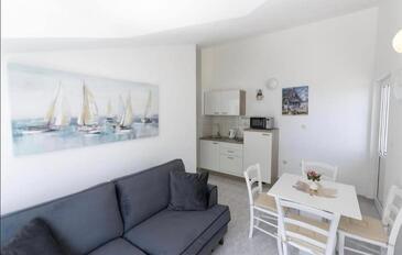 Az Apartman 8 főt tud fogadni. Az ágyak a/az 2 hálószobában, és a nappali és étkezőban/ben vannak, melynek méretei 49m2. A forró nyári estéket a vendégek saját teraszukon élvezhetik. Az apartmanból tengerre néző kilátás nyílik. A közös barbecue-helyet a vendég szabadon használhatja.