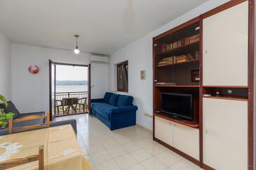 Az Apartman 4 főt tud fogadni. Az ágyak a/az 1 hálószobában, és a nappaliban/ben vannak, melynek méretei 43m2. A forró nyári estéket a vendégek saját balkonukon élvezhetik. Az apartmanból tengerre néző kilátás nyílik. A közös barbecue-helyet a vendég szabadon használhatja.