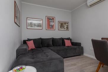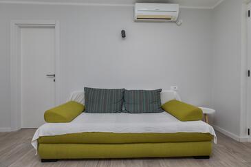 Az Apartman 5 főt tud fogadni. Az ágyak a/az 2 hálószobában, és a nappaliban/ben vannak, melynek méretei 38m2. A forró nyári estéket a vendégek saját teraszukon élvezhetik. Az apartmanból tengerre néző kilátás nyílik. A közös barbecue-helyet a vendég szabadon használhatja. A vendégek itt tartózkodásuk ideje alatt használhatják a közös medencét.