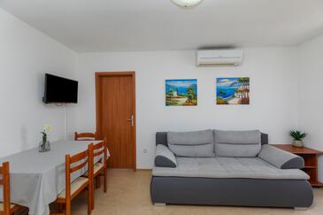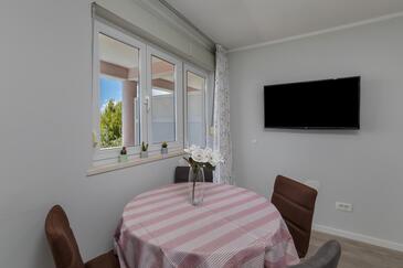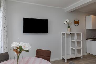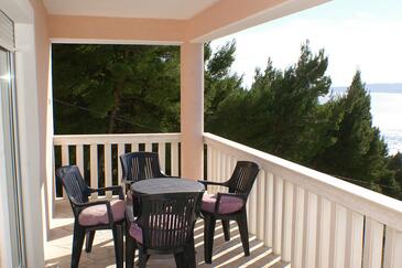 Az Apartman 5 főt tud fogadni. Az ágyak a/az 2 hálószobában, és a nappaliban/ben vannak, melynek méretei 38m2. A forró nyári estéket a vendégek saját teraszukon élvezhetik. Az apartmanból tengerre néző kilátás nyílik. A közös barbecue-helyet a vendég szabadon használhatja. A vendégek itt tartózkodásuk ideje alatt használhatják a közös medencét.