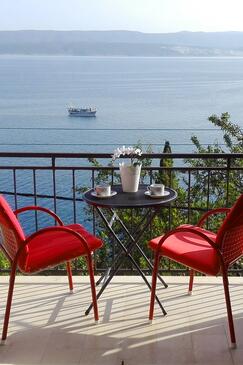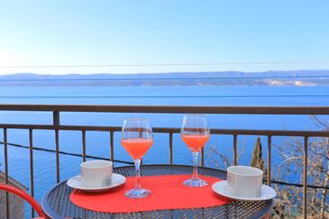 Az Apartman 3 főt tud fogadni. Az ágyak a/az 1 hálószobában vannak, melynek méretei 33m2. A forró nyári estéket a vendégek saját teraszukon élvezhetik. Az apartmanból tengerre néző kilátás nyílik. A közös barbecue-helyet a vendég szabadon használhatja. A szállásegységbe lehetséges háziállatot hozni, ennek költségét a foglalási díj tartalmazza. A lefoglalt szállásegység teraszán áthaladnak más vendégek, vagy a tulajdonosok.