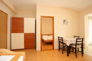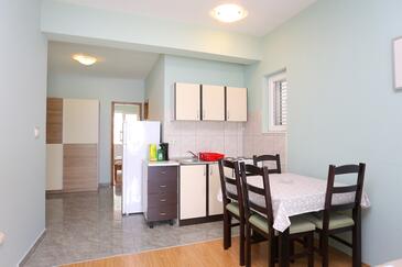 Az Apartman 4 főt tud fogadni. Az ágyak a/az 1 hálószobában, és a étkezőban/ben vannak, melynek méretei 31m2. A forró nyári estéket a vendégek saját teraszukon élvezhetik. Az apartmanból tengerre néző kilátás nyílik. A közös barbecue-helyet a vendég szabadon használhatja.
