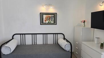Az Apartman 4 főt tud fogadni. Az ágyak a/az 1 hálószobában, és a nappaliban/ben vannak, melynek méretei 33m2. A forró nyári estéket a vendégek saját teraszukon élvezhetik. Az apartmanból tengerre néző kilátás nyílik. A közös barbecue-helyet a vendég szabadon használhatja. A szállásegységbe lehetséges háziállatot hozni felár ellenében.