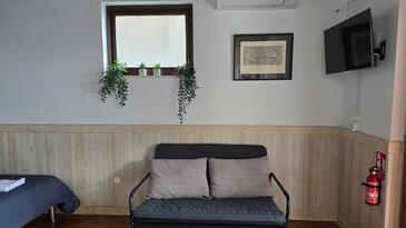 Az Apartman 4 főt tud fogadni. Az ágyak a/az 1 hálószobában, és a nappaliban/ben vannak, melynek méretei 33m2. A forró nyári estéket a vendégek saját teraszukon élvezhetik. Az apartmanból tengerre néző kilátás nyílik. A közös barbecue-helyet a vendég szabadon használhatja. A szállásegységbe lehetséges háziállatot hozni felár ellenében.