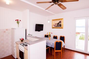 Az Apartman 8 főt tud fogadni. Az ágyak a/az 3 hálószobában, és a étkezőban/ben vannak, melynek méretei 75m2. A forró nyári estéket a vendégek saját teraszukon élvezhetik. Az apartmanból tengerre néző kilátás nyílik. A teljes élvezet és kikapcsolódás érdekében van saját barbecue hely is, csakis e szálláshely vendégei számára.