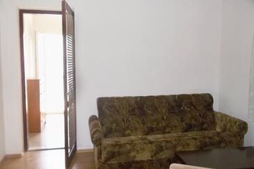 Az Apartman 5 főt tud fogadni. Az ágyak a/az 2 hálószobában, és a étkezőban/ben vannak, melynek méretei 39m2. A forró nyári estéket a vendégek saját teraszukon élvezhetik. Az apartmanból tengerre néző kilátás nyílik. A közös barbecue-helyet a vendég szabadon használhatja.