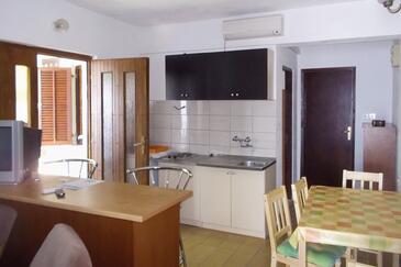 Az Apartman 5 főt tud fogadni. Az ágyak a/az 2 hálószobában, és a étkezőban/ben vannak, melynek méretei 39m2. A forró nyári estéket a vendégek saját teraszukon élvezhetik. Az apartmanból tengerre néző kilátás nyílik. A közös barbecue-helyet a vendég szabadon használhatja.