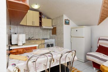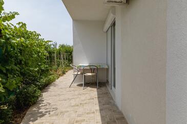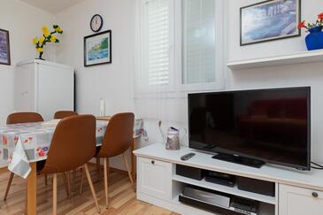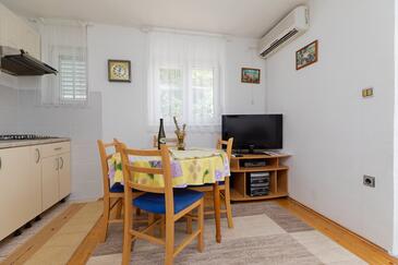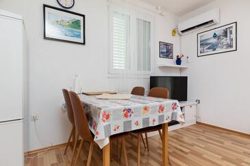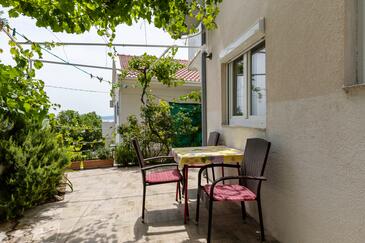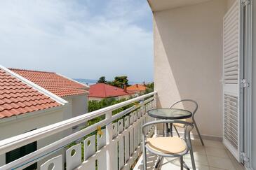 Az Apartman 5 főt tud fogadni. Az ágyak a/az 2 hálószobában vannak, melynek méretei 55m2. A forró nyári estéket a vendégek saját teraszukon élvezhetik. Az apartmanból tengerre néző kilátás nyílik. A közös barbecue-helyet a vendég szabadon használhatja.