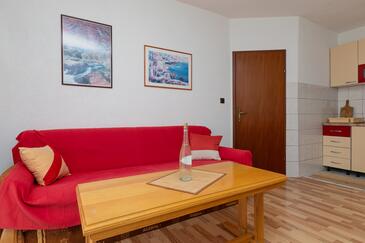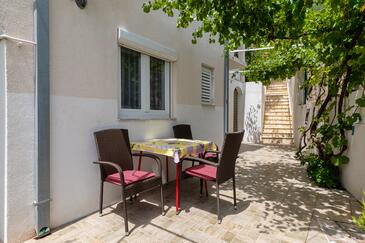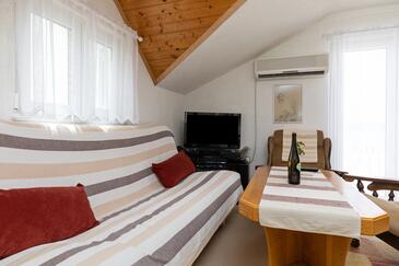 Az Apartman 5 főt tud fogadni. Az ágyak a/az 2 hálószobában vannak, melynek méretei 55m2. A forró nyári estéket a vendégek saját teraszukon élvezhetik. Az apartmanból tengerre néző kilátás nyílik. A közös barbecue-helyet a vendég szabadon használhatja.