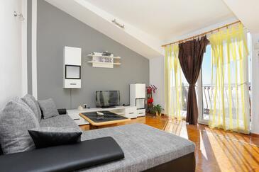 Az Apartman 6 főt tud fogadni. Az ágyak a/az 2 hálószobában, és a nappaliban/ben vannak, melynek méretei 59m2. A forró nyári estéket a vendégek saját teraszukon élvezhetik. Az apartmanból tengerre néző kilátás nyílik. A közös barbecue-helyet a vendég szabadon használhatja.