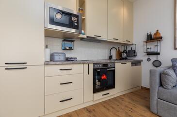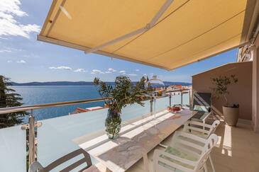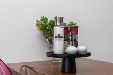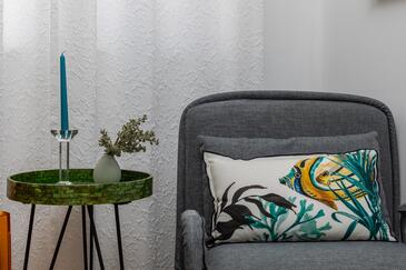 Az Apartman 5 főt tud fogadni. Az ágyak a/az 1 hálószobában, és a nappaliban/ben vannak, melynek méretei 39m2. A forró nyári estéket a vendégek saját balkonukon élvezhetik. Az apartmanból tengerre néző kilátás nyílik.