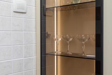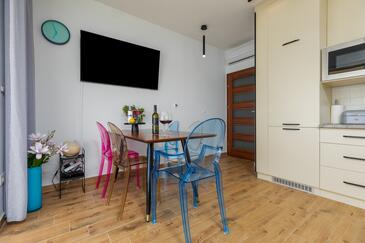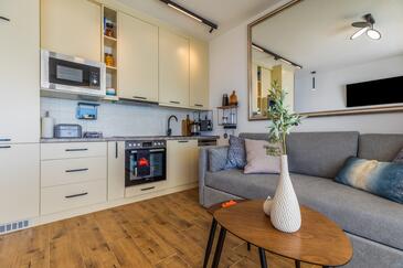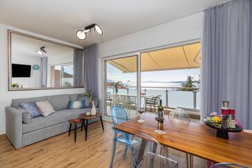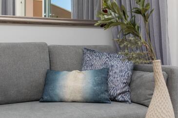Az Apartman 5 főt tud fogadni. Az ágyak a/az 1 hálószobában, és a nappaliban/ben vannak, melynek méretei 39m2. A forró nyári estéket a vendégek saját balkonukon élvezhetik. Az apartmanból tengerre néző kilátás nyílik.