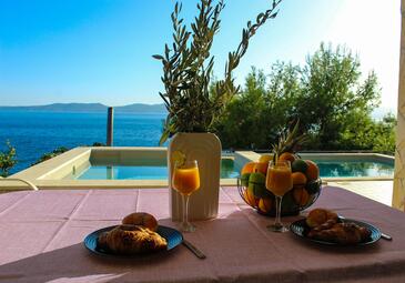 Az Apartman 4 főt tud fogadni. Az ágyak a/az 2 hálószobában vannak, melynek méretei 51m2. A forró nyári estéket a vendégek saját teraszukon élvezhetik. Az apartmanból tengerre néző kilátás nyílik. A közös barbecue-helyet a vendég szabadon használhatja. A vendégek itt tartózkodásuk ideje alatt kikapcsolódás céljából használhatják a magán medencét.