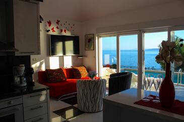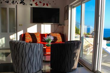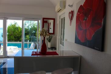Az Apartman 4 főt tud fogadni. Az ágyak a/az 2 hálószobában vannak, melynek méretei 51m2. A forró nyári estéket a vendégek saját teraszukon élvezhetik. Az apartmanból tengerre néző kilátás nyílik. A közös barbecue-helyet a vendég szabadon használhatja. A vendégek itt tartózkodásuk ideje alatt kikapcsolódás céljából használhatják a magán medencét.