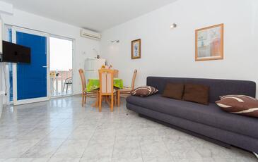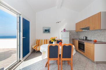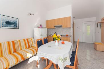Az Apartman 4 főt tud fogadni. Az ágyak a/az 1 hálószobában, és a étkezőban/ben vannak, melynek méretei 31m2. A forró nyári estéket a vendégek saját teraszukon élvezhetik. Az apartmanból tengerre néző kilátás nyílik. A közös barbecue-helyet a vendég szabadon használhatja. A szállásegységbe lehetséges háziállatot hozni felár ellenében.