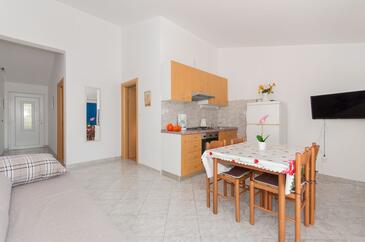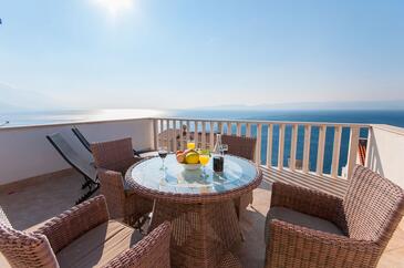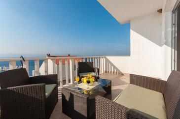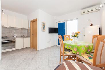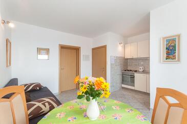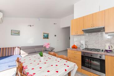 Az Apartman 4 főt tud fogadni. Az ágyak a/az 1 hálószobában, és a étkezőban/ben vannak, melynek méretei 31m2. A forró nyári estéket a vendégek saját teraszukon élvezhetik. Az apartmanból tengerre néző kilátás nyílik. A közös barbecue-helyet a vendég szabadon használhatja. A szállásegységbe lehetséges háziállatot hozni felár ellenében.